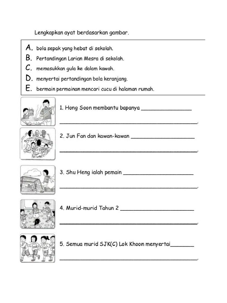 Bina Ayat Berdasarkan Gambar School Kids Activities Malay Language Writing Skills